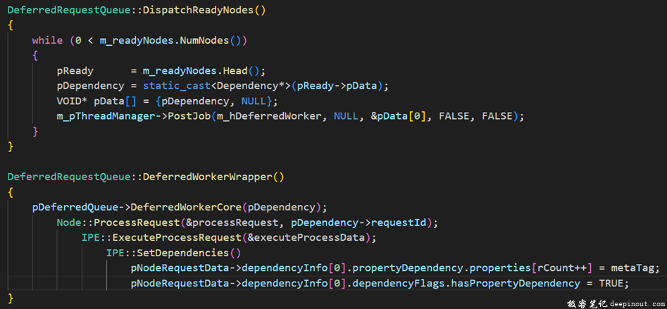 m_pDeferredRequestQueue->AddDeferredNode(requestId, m_ppOrderedNodes[nodeIndex], NULL);//最后一个参数pDependencyUnit为NULL