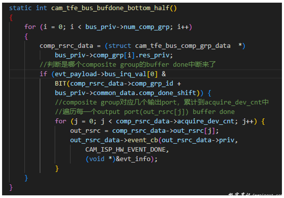 Composite group, 多个isp output port共享一个buffer done中断
