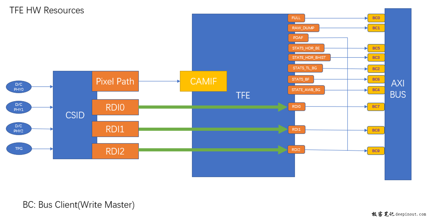 cam_tfe_hw_mgr: TFE HW Manager,管理所有三个TFE,CSID,TPG等硬件资源