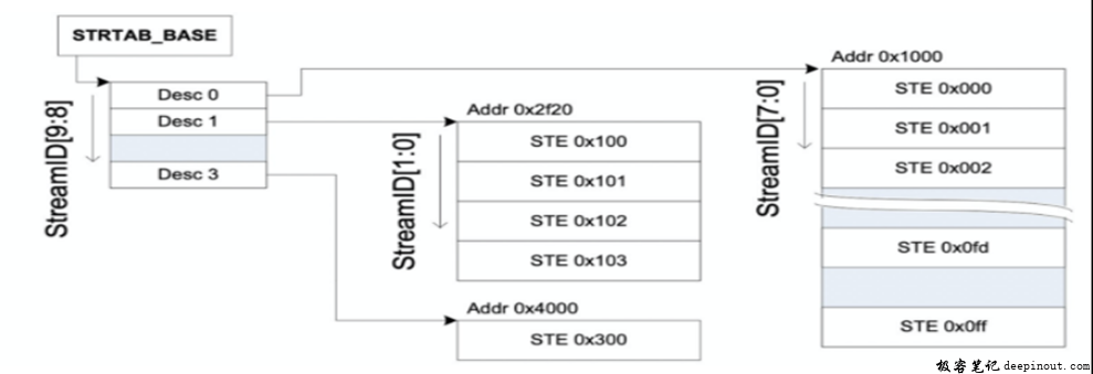//配置STE BASE地址到SMMU硬件寄存器,这样SMMU就可以通过这个基地址找到后面STE,CD,Page table了