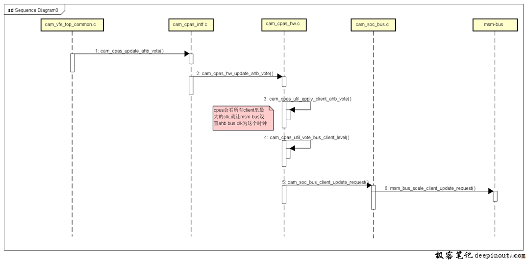 在Camera系统中,AHB总线用于控制Camera子系统各硬件的寄存器,下图是VFE AHB投票流程。