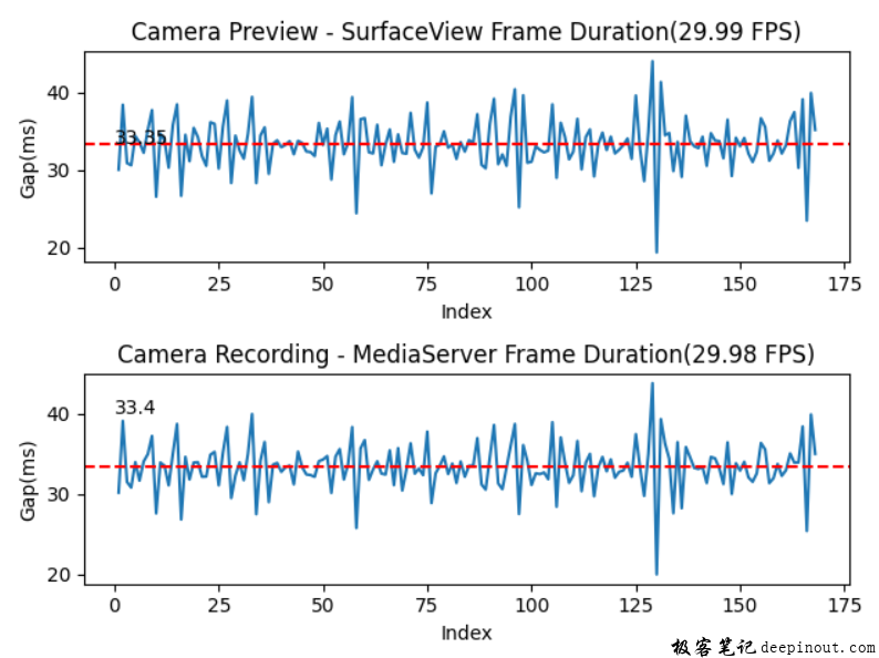 录像除了要关注平均帧率外,每两帧之间的时间间隔,也需要重点关注,这个时间间隔用于衡量抖动